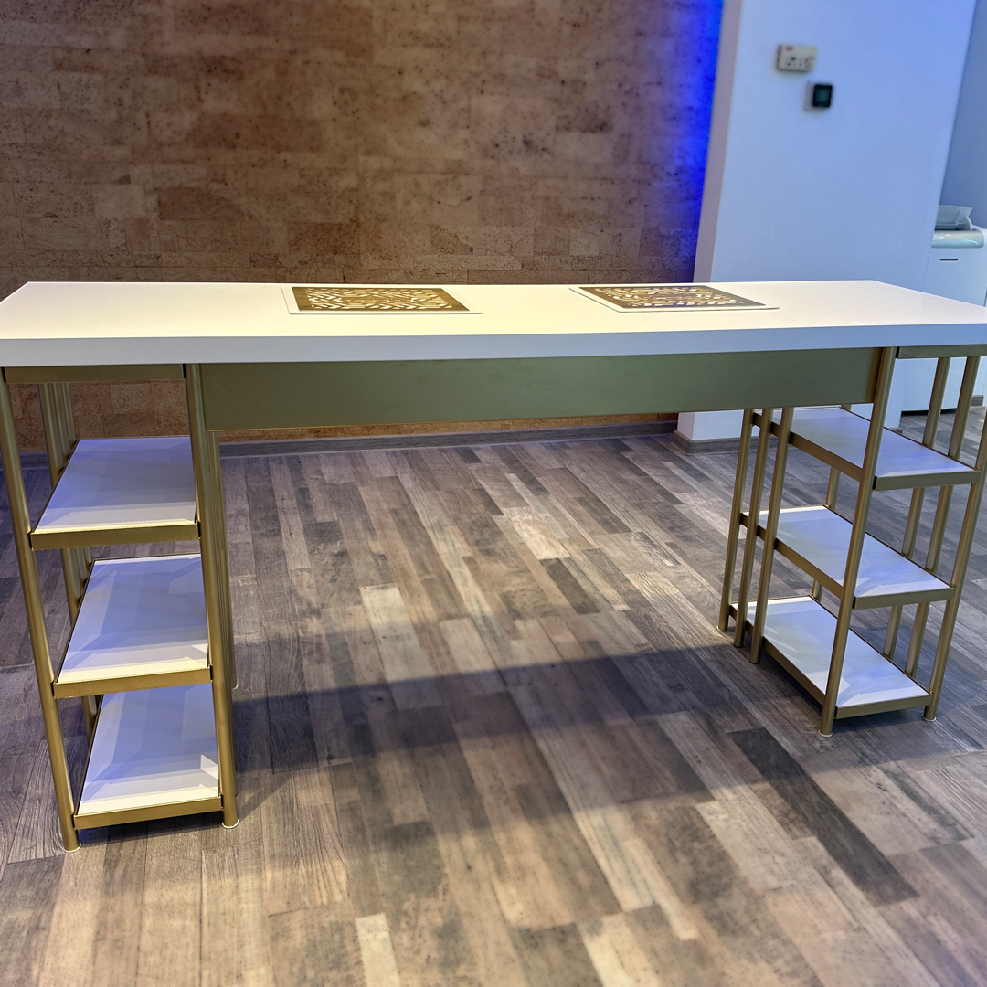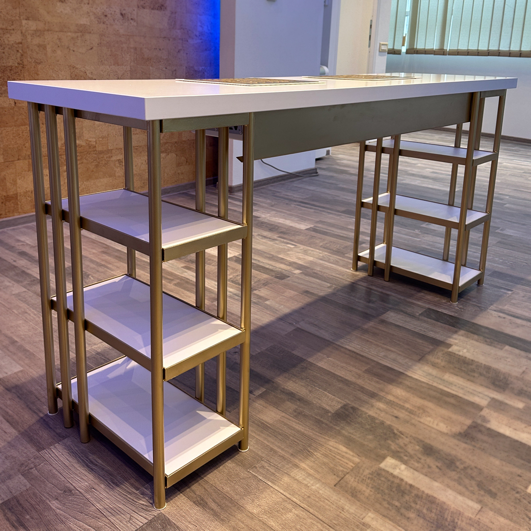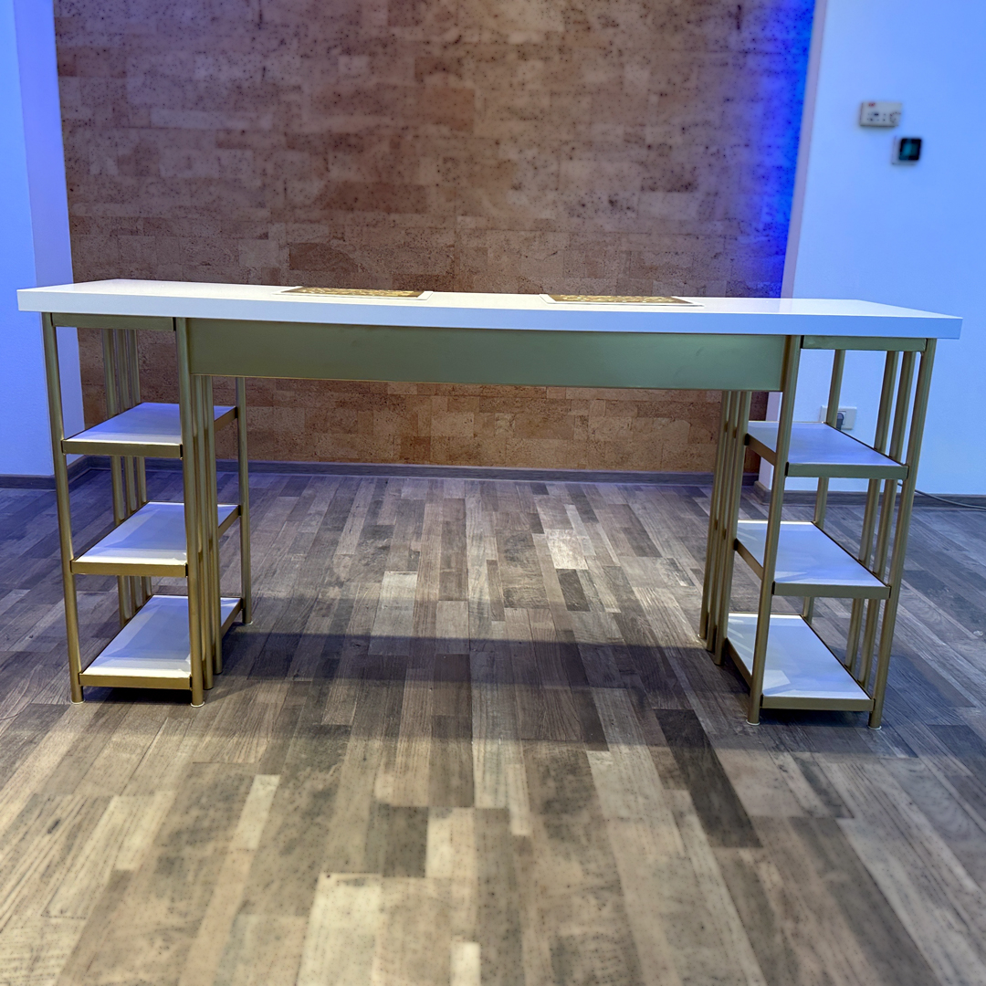 Masa dispune de 6 polite pentru depozitare, avand dimensiune de 20x42.