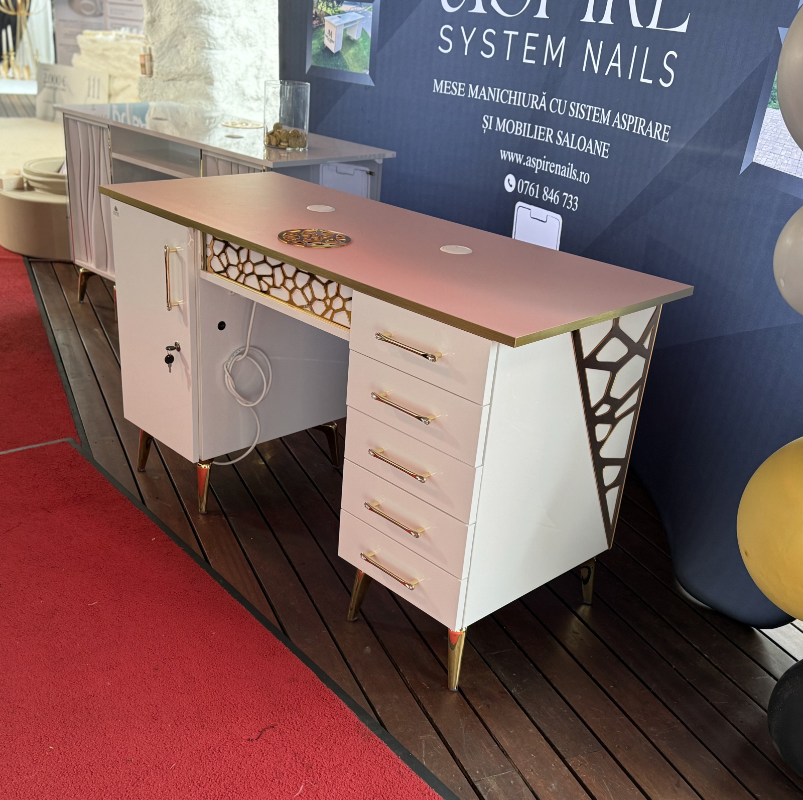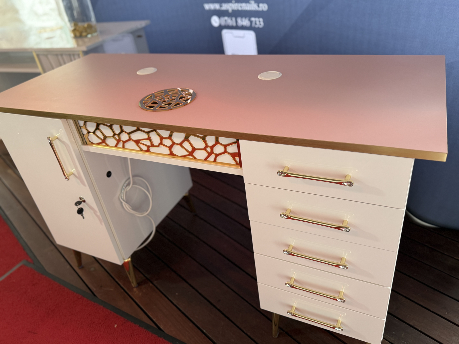 Dimensiunea mesei se poate modifica in functie de necesitatea si spatiul disponibil. Masa se poate accesoriza cu diverse elemente pentru decor (riflaj, logo,insertii metalice, etc contra cost). Pentru customizarea mesei va rugam apelati